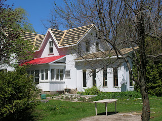 On another day, while I was away in Toronto with Robb still at the farm, Sam tied his horse up to one of the big tires Robb and I had dragged off the fallen part of the barn. This worked fine until something spooked the horse and sent her running down the lane, dragging that heavy tire. Robb says he never saw someone get off a roof so fast to catch the horse before she ended up on the road!