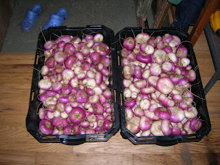 Bins of Milan turnips…purple, white, crisp and crunchy!