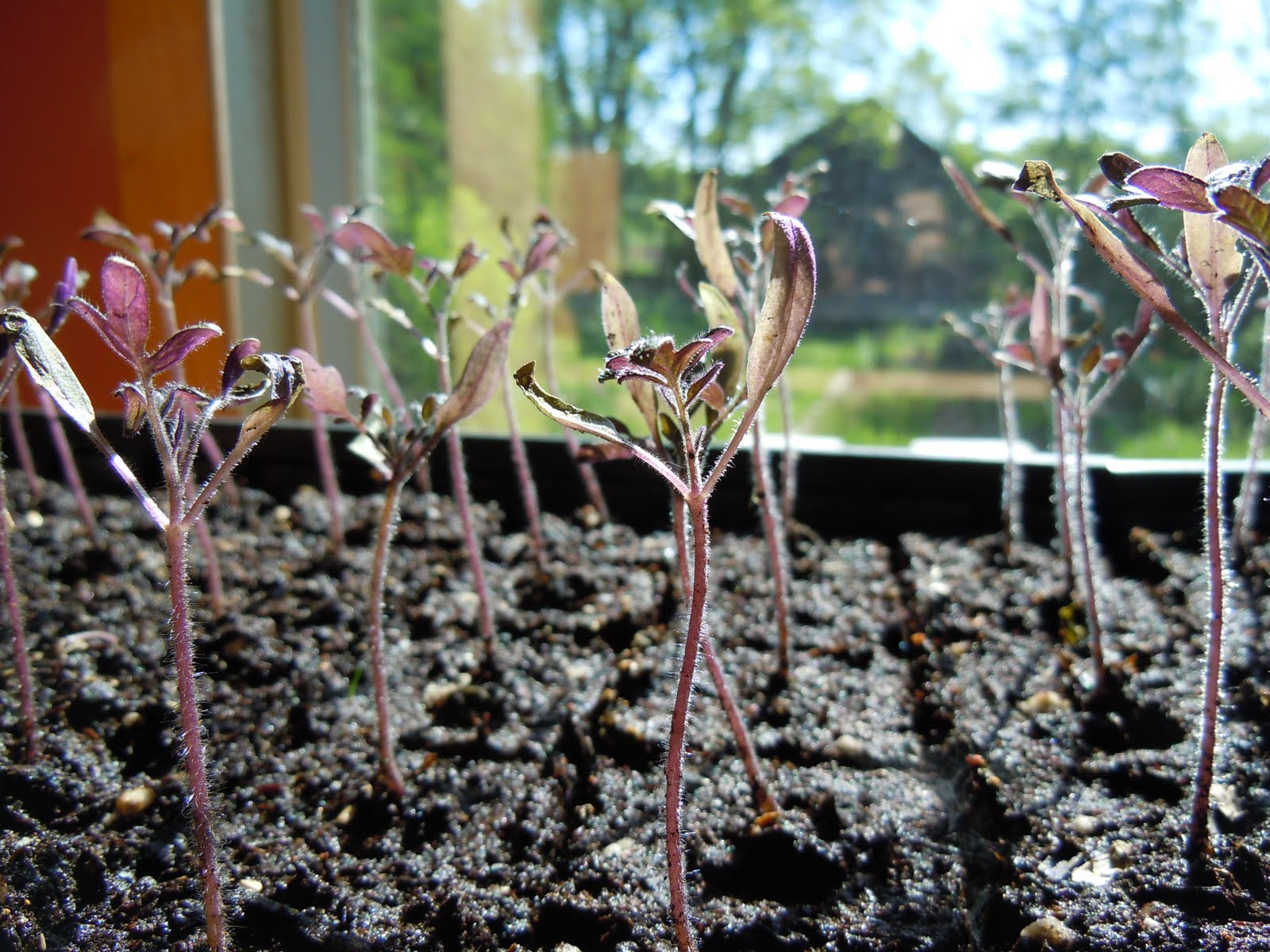 Poor scorched baby tomato plants. They’re barely even still green at all! And for those in the know, yes, they are quite stretched, which I don’t mind for tomato plants since I’ll plant them deep in the field so that the whole stalk will grow roots.