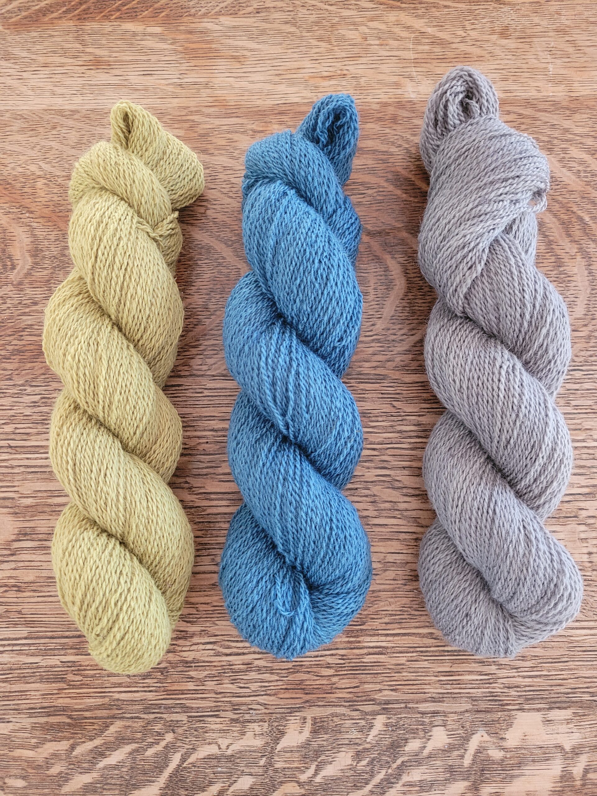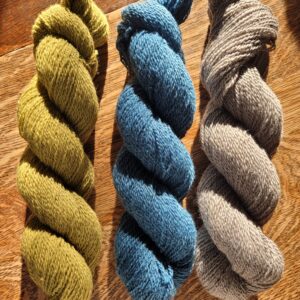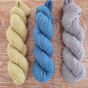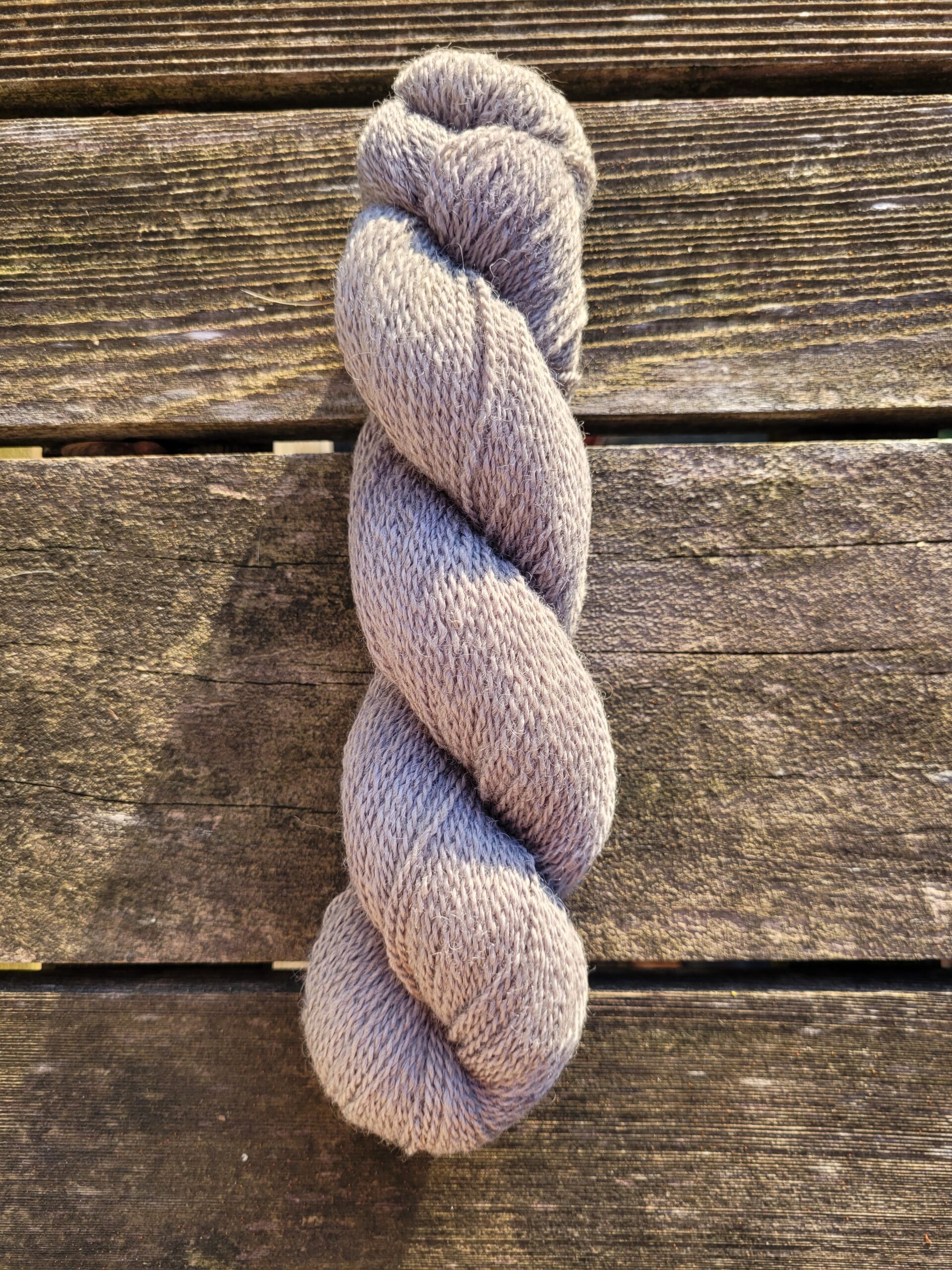 This is a 2 ply, sport/DK weight 100% Wool yarn (Romney/Gotland/Shetland mixed breed sheep).